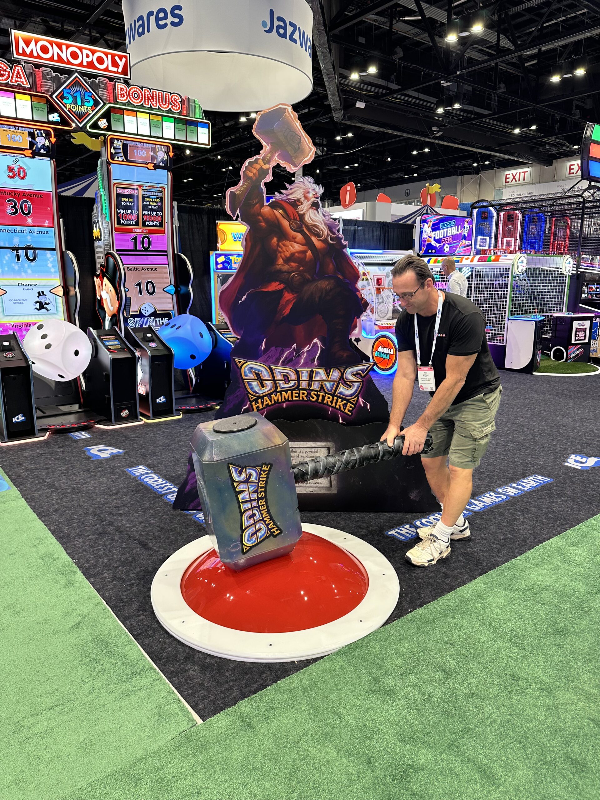 From November 18–21 at the IAAPA Expo inside the Orange County Convention Center in Orlando, Florida, ICE unveiled its newest attraction: Odin’s Hammer Strike. This highly anticipated launch stood alongside a strong lineup of ICE classics, including Ice Ball, Down the Clown (now enhanced with a new LED lighting kit), and Whack N Win. Additional featured titles included NBA Baller, Smash N Win – NBA Edition, Smash N Win – Monster Edition, Neon Bowling, and Stop the Drop, among many other games presented at the show.